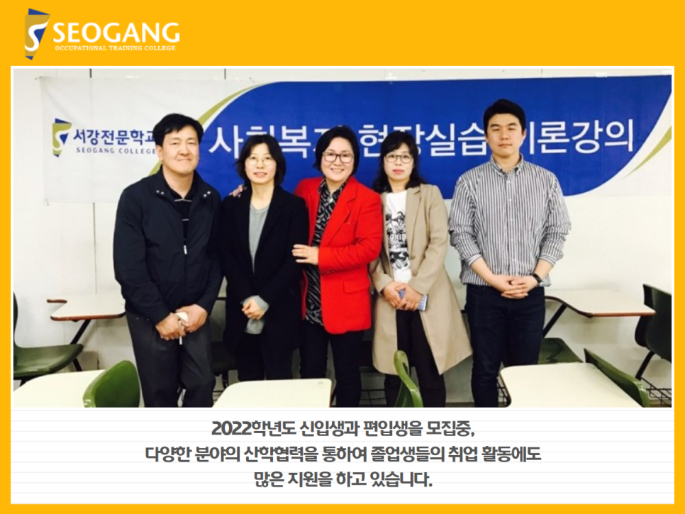 또한 서강 전문학교는 2022학년도 신입생과 편입생을 모집 중이며, 다양한 분야의 산학협력을 통하여 졸업생들의 취업 활동에도 많은 지원을 하고 있습니다.
