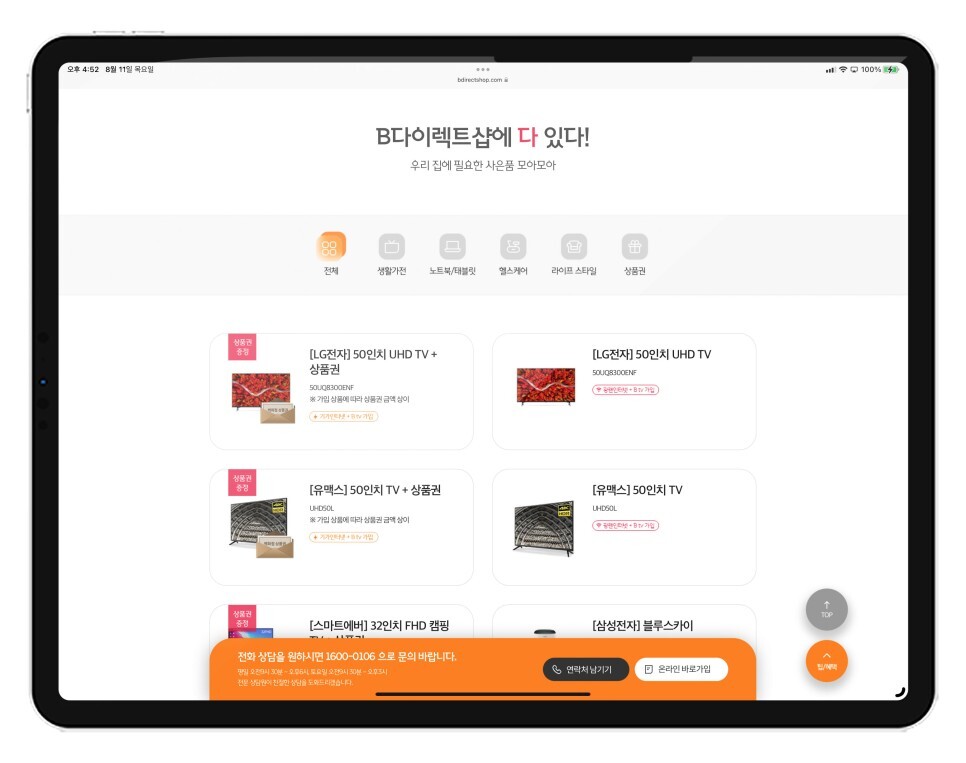 공식 온라인샵 또한 좋은 사은품 및 최대 혜택을 제공하고 있기 때문에, 기왕 가입을 하신다면 안전하고 믿을 수 있는 B다이렉트샵에서 가입하시면 될 것 같습니다.