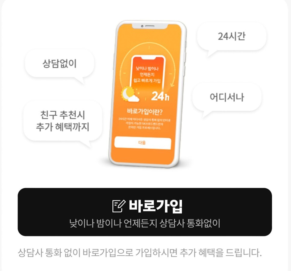 SK브로드밴드 본사 공식 온라인샵 #B다이렉트샵 에서는 바로가입을 통해 24시간 언제 어디서나 온라인으로 #인터넷 과 #IPTV 를 가입할 수 있습니다.