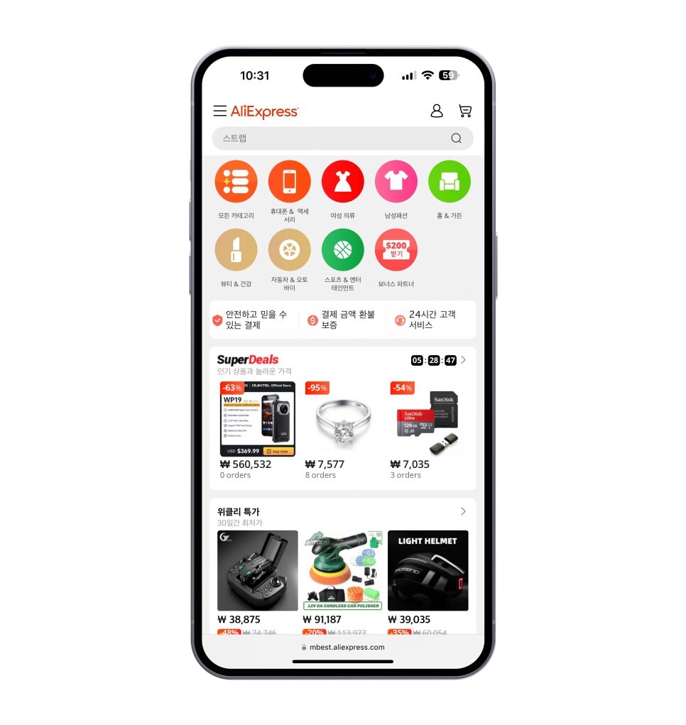 모바일로 접속하니 가끔 제품 리스트나 설명이 영어로 되어 있어서 불편한 경우가 있는데, 알리익스프레스 앱을 이용하면 매우 편하게 제품을 확인 할 수 있습니다.