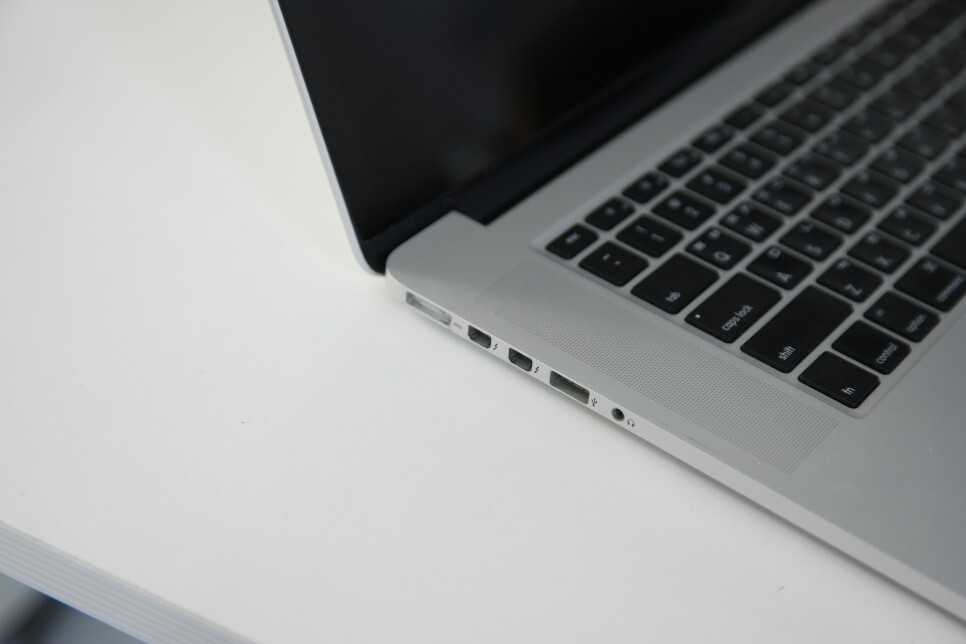 2015년 식 맥북프로 15인치 레티나 모델이다. 초기의 썬더볼트 단자는 미니DP 포트의 규격을 따랐다.