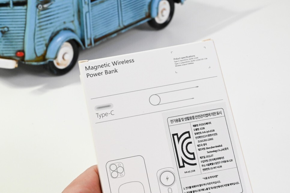 마그네틱을 와이어리스 파워 뱅크라고 쓰여있습니다. 아이폰의 맥세이프 충전을 지원하는 제품입니다.