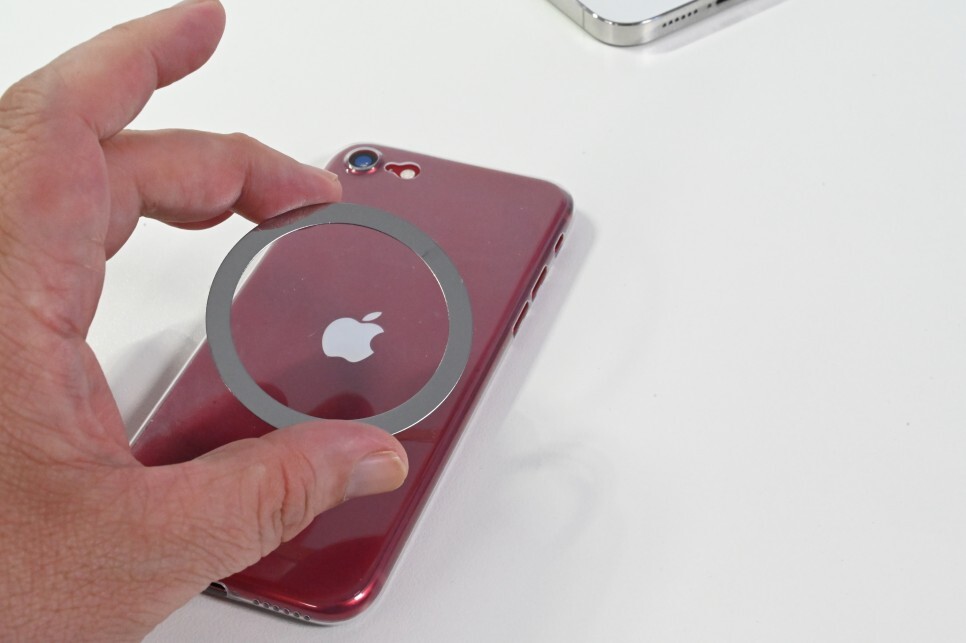 저는 링 홀더 스티커를 맥세이프를 지원하지 않는 아이폰 SE에 설치해서 사용하고 있습니다.