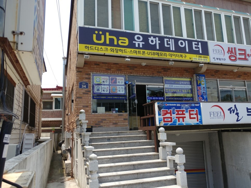 유하 데이터라는 커다란 간판이 달려있는 건물이 있네요. 여기선 중고 노트북만 매입하는 게 아니라 각종 데이터 복구를