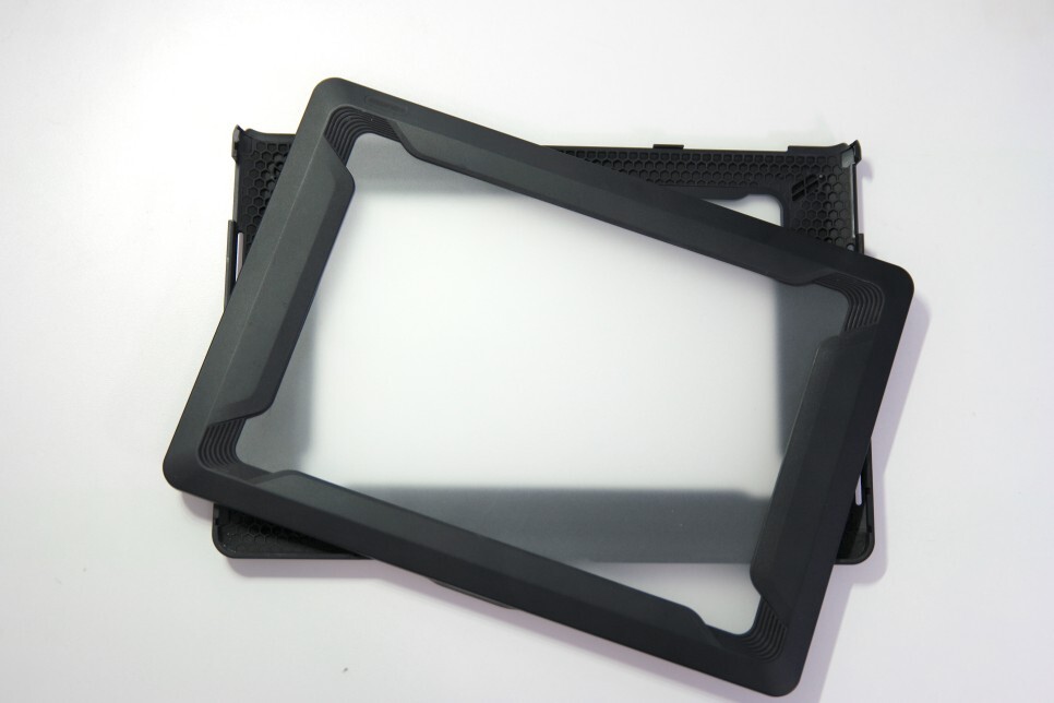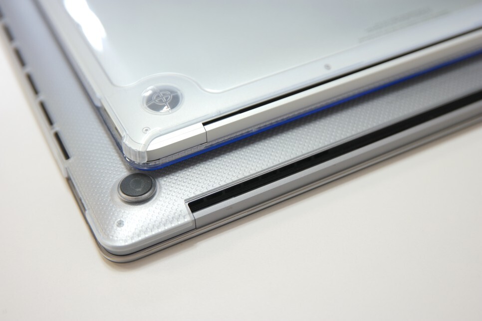 대부분의 제품 브랜드가 하판의 디자인이 비슷한데, Incase의 하판에 힌지 주변의 마무리는 매우 말끔한 것 같습니다. 외부로 노출되는 부분을 상당히 줄였기 때문에 보다 보호라는 점이 포인트입니다.