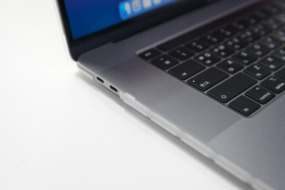 북프로 16인치는 가장 케이스를 많이 샀던 제품입니다. 첫번째 케이스는 임시로 구매한 제품으로 보호필름은 붙이기 전까지 쓰던 제품이었습니다. 1만 원 대의 제품은 걸리는 위치 등이 조금 잘못 되어 있는 디자인이어서 정말 임시용입니다.