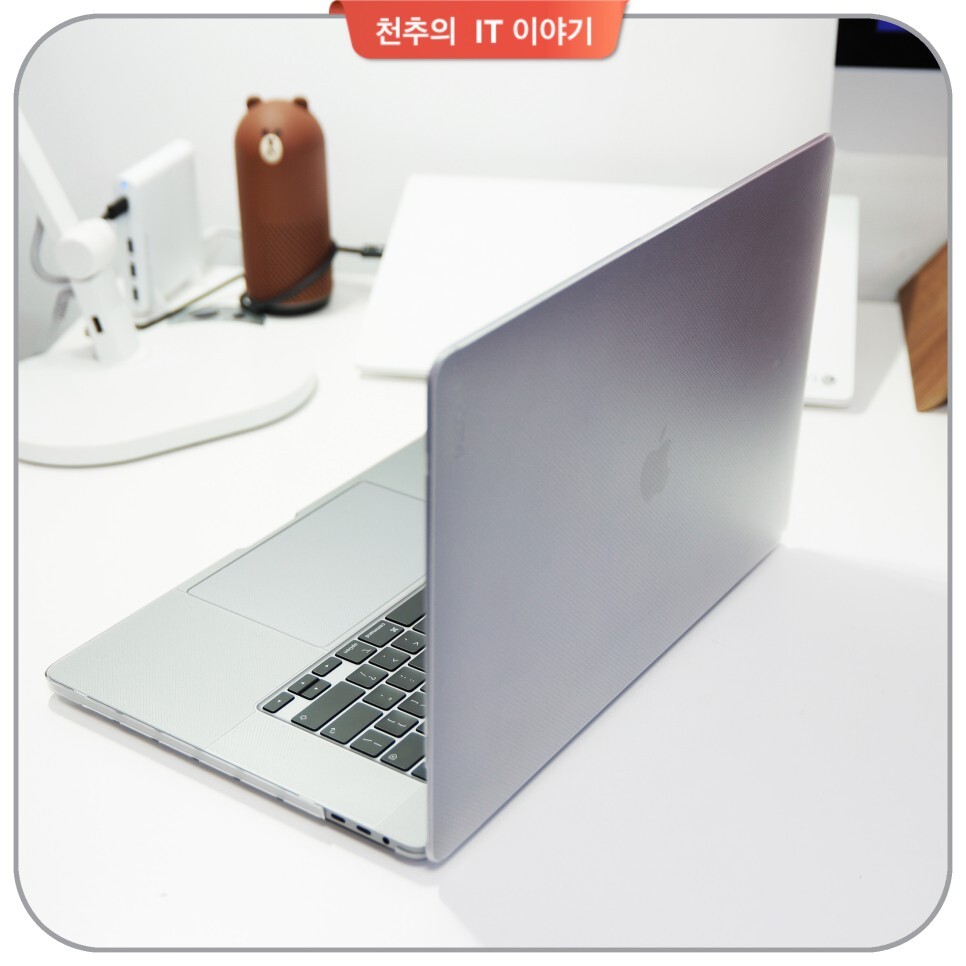 맥북 프로 15인치에는 국내에서 철수한 "모쉬(moshi)"라는 곳에서 제품을 제공받아 쓰고 있는데, 반투명의 멋진 디자인으로 만독도가 좋은 제품이 있는데 현재 업무용으로 쓰고 있는 15인치에서 아직도 쓰고 있습니다.