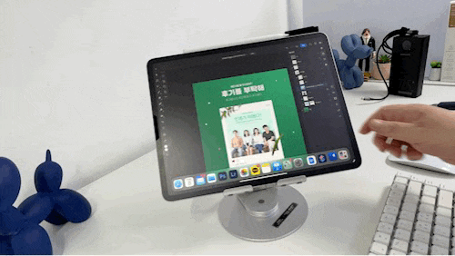 아이패드 프로를 거치하고 업무용으로 세팅을 했습니다. 살짝 올려 놓고 사용하는데, 상당히 안정적으로 거치가 되고 노트북처럼 사용이 가능하기 때문에 편하게 쓸 수 있습니다.