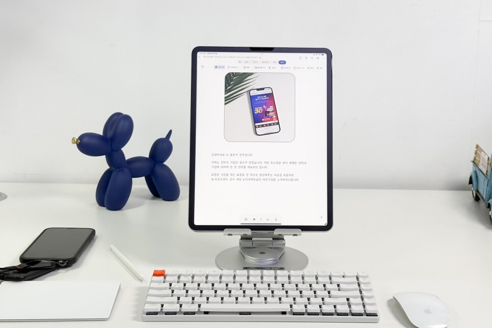 아이패드 프로용 매직 키보드는 45만 원이 넘는 가격이라서 태블릿 거치대와 키보드 마우스를 이용한 업무 환경 설정을 해보도록 하겠습니다.