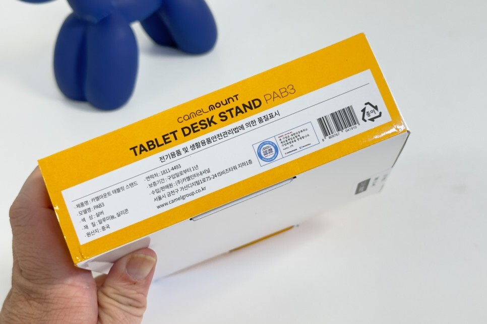 측면에서 본 모습니다. 일반적인 접이형 태블릿 거치대 보다는 약간 두꺼운 것을 확인 할 수 있는데, 화전이 가능하기 때문입니다.