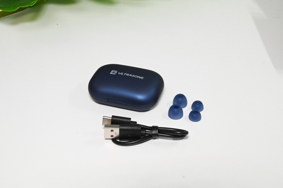 구성품은 본체와 추가 이어피스 충전 케이블이 들어있습니다.