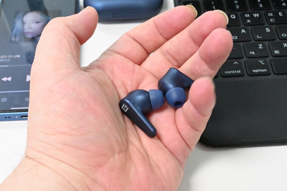 정말 제가 좋아하는 컬러입니다. 블루 제품은 그다지 많지 않은 데, 정말 예쁜 블루 색상으로 케이스와 본체 모두 깔끔해서 좋은 것 같습니다. 요즘은 노이즈 캔슬링 블루투스 이어폰의 성능이 비슷하기 때문에 선택에서 가성비와 디자인이 기준이 될 수 있기 때문에 개인적으로는 정말 호입니다.