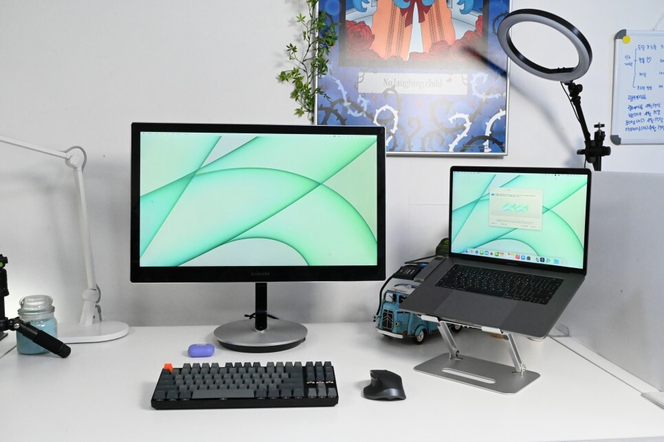 맥북프로와는 정말 깔끔하게 연결이 되기 때문에 편하게 사용할 수 있습니다.