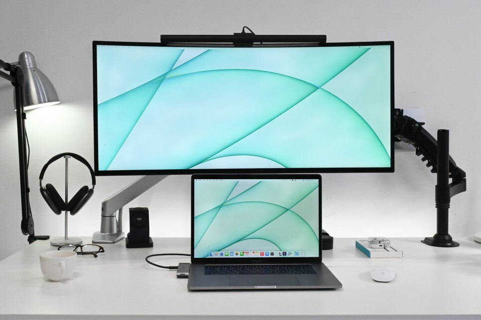 썬더 볼트 3를 지원하기 때문에 썬더볼트 독과 연결해서 32인치 와이트 모니터와 연결을 해보았습니다. HDMI가 있지만, USB-C를 지원하는 모니터와 연결을 해보았는데 연결은 문제없이 잘 되었습니다.