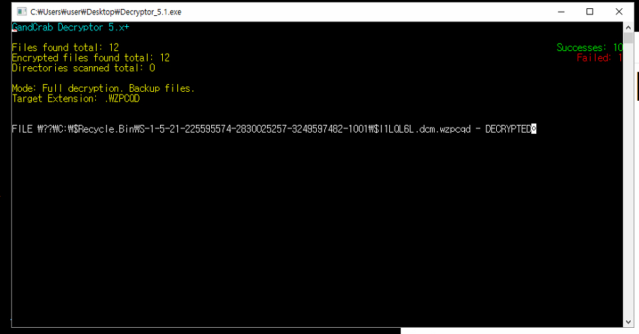 위에도 말했지만 암호화된 파일들은 이것을 감염시킨 주최자들에게서만 key를 전송받을 수 있고 유일한 방법은 랜섬노트를 따라는 것이기 때문에 아무리 높은 기술력을 가지고 있다고 하더라도 이것을 다른 방법으로 풀 수 있는 방법은 존재하지 않습니다.