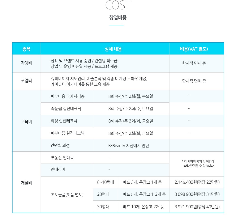 그 중에서도 골목 상가마다 보이는 피부관리실의 창업을 고민하시는 분들이 많으신데요. 소자본 뷰티샵 창업으로도 피부관리실 창업에 성공하실 수 있도록 K-Beauty에서 도와드리고 있습니다!