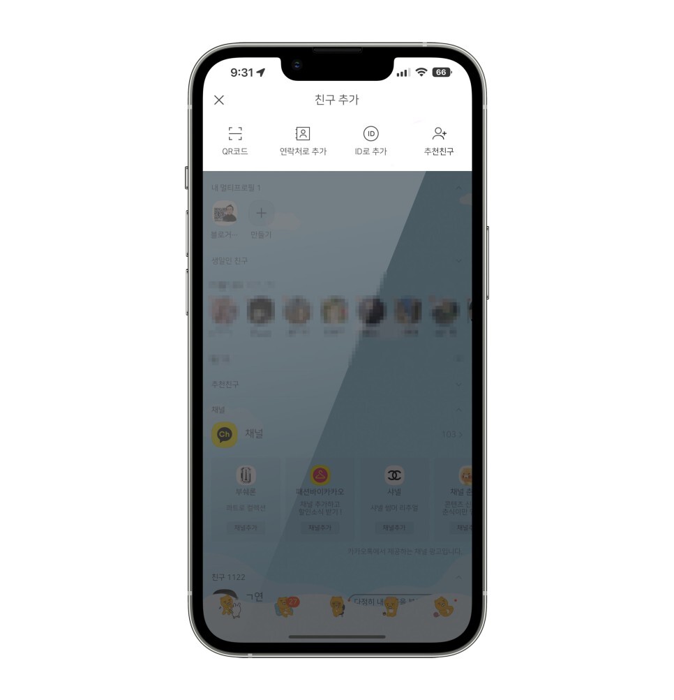 설정에 들어가시면 상단에 친구 추가가 있습니다.