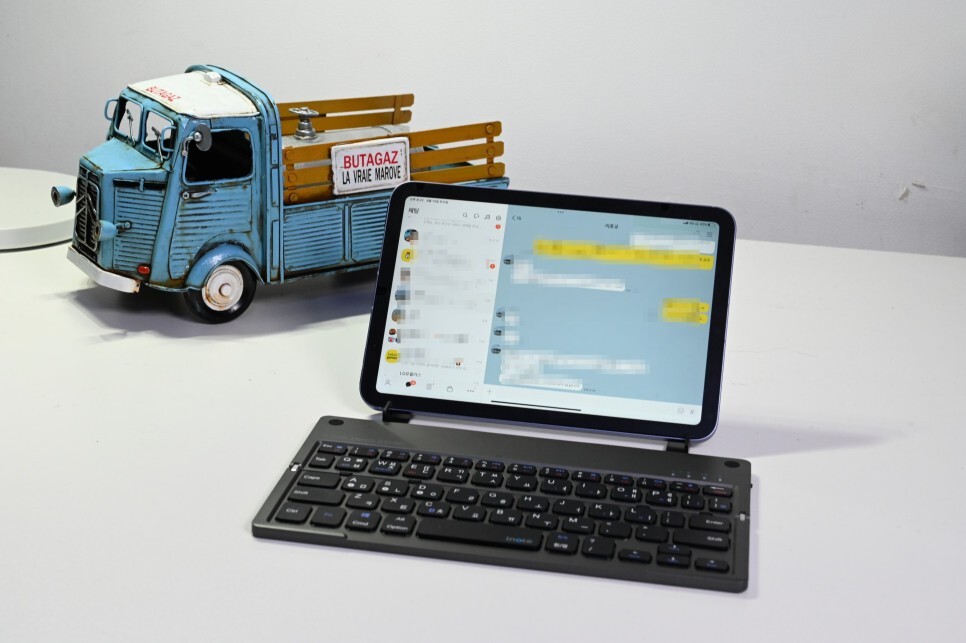 아이패드 미니 6세대의 경우 카카오톡을 쓰기에 정말 최적화되어 있습니다. 손으로 들고 쓰기도 좋고 키보드를 연결해서 사용하기도 좋은 것 같습니다.