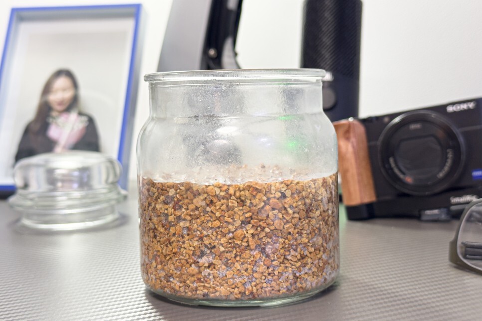 다음은 가습용으로 활용하기 위해서 용기에 물과 함께 넣어 놓았습니다. 개인적으로 제습과 가습, 방향 효과까지 있다고 해서 신뢰를 하기 어려웠는데, 물을 넣은 순간 사각사각하면서 물을 흡수하는 소리가 들려서 깜짝 놀랐습니다.