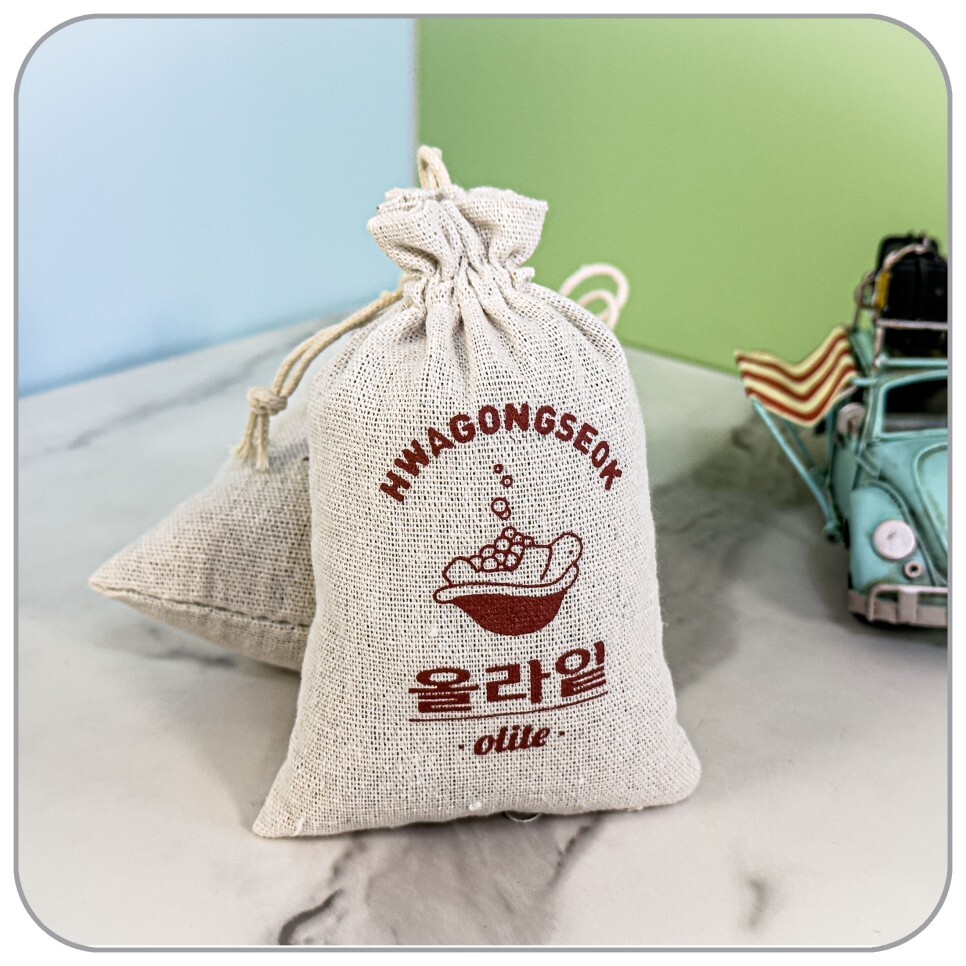 자동차에는 방향제 용도로 사용하고자 가져다 놓았습니다. 제 차가 디젤 차이기 때문에 디젤차 특유의 냄새를 잡기 위해서 작은 파우치는 차량에서 사용하고 있습니다.