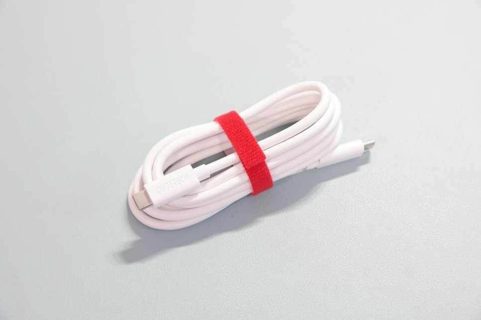 USB-C 케이블이 추가로 하나 들어있는데, 1.5M로 벽에 초텍 듀얼 C 타입 충전기 PD6008 꽂아도 충전에 문제없는 길이입니다. 100W PD 충전을 위한 케이블이어서 그런지 두께도 기존 제품 보다 약간 두꺼운 것을 알 수 있습니다.