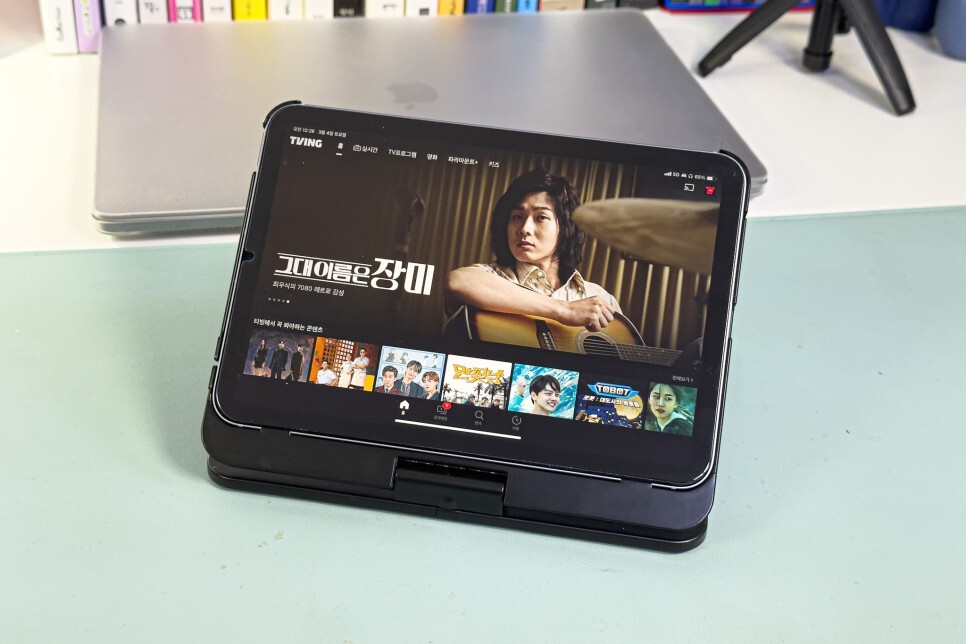 사무실 원탁에서 주로 사용하는데, 티빙이나 웨이브 같이 큰 화면을 지원하지 않는 앱을 에어플레이로 볼 때 정말 편리합니다.