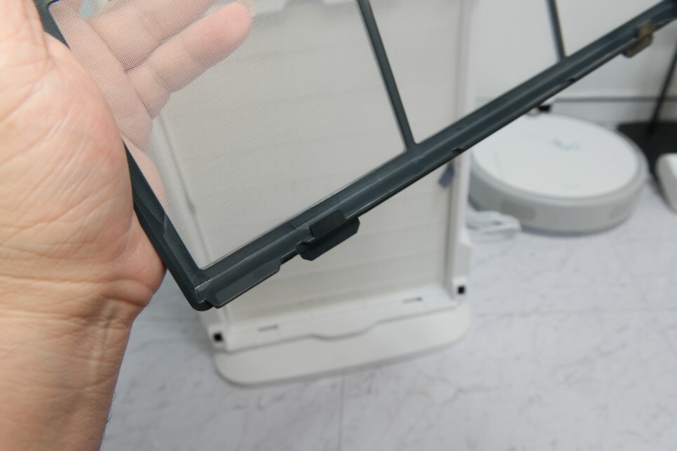 앞서 언급한 활성탄이 들어있던 탈취필터는 생활악취/유해가스/새집증후군 유발물질을 제거하는 역할을 합니다. 이 프리필터와 탈취필터는 고정이 되어 있어 더욱 편리한데, 프리필터는 한달에 한번 먼지 청소를 해주기에 그때 프리필터만 분리해서 청소하시면 될 것 같습니다.