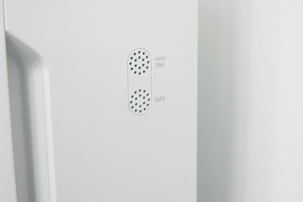 측면에 보이는 센서는 초정밀 레이저 먼지센서로, 눈에 보이지 않는 극초미세먼지까지 빠르고 정확하게 측정해 준다고 합니다. 먼지센서로 극초미세를 측정하고, 마이크로 집진필터로 제거해 주니 더욱 만족스럽습니다.