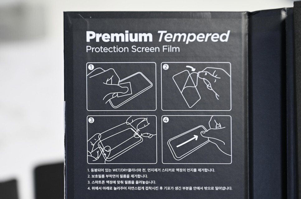 강화유리의 경우 먼지만 주의하시면 한두 번 정도 위치를 잘못 잡아도 살짝 들어서 다시 부착을 할 수 있습니다. 가습기를 조금 강하게 틀어서 먼지를 줄여주는 것도 팁 중 하나입니다.