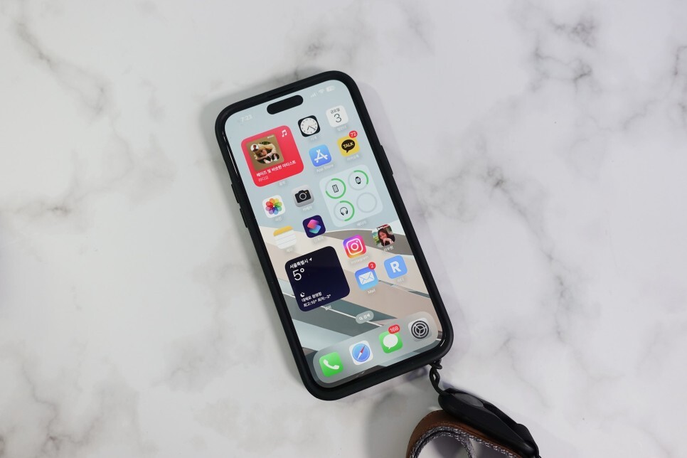 상당히 타이트한 픽디자인의 모바일 케이스를 씌웠는데도 위치에 문제없이 깔끔하게 부착을 완료했습니다.