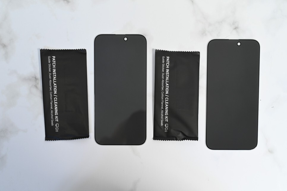 2세트의 아이폰용 강화유리 보호필름이 있는데, 이번에는 한 번에 깔끔하게 부착해서 한 세트는 보관했다가 문제가 생기면 교체하려고 합니다.