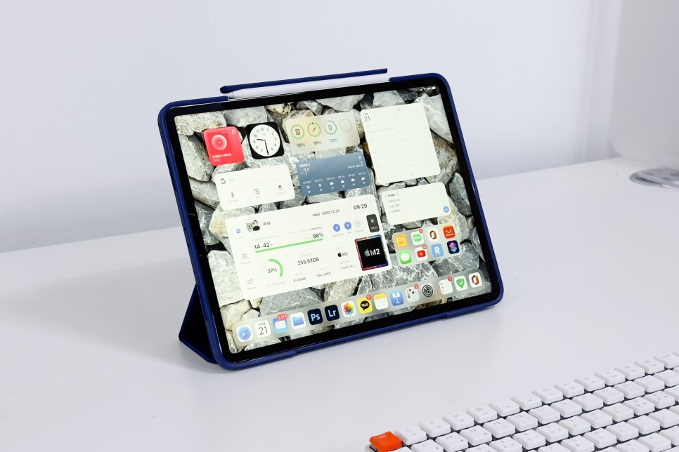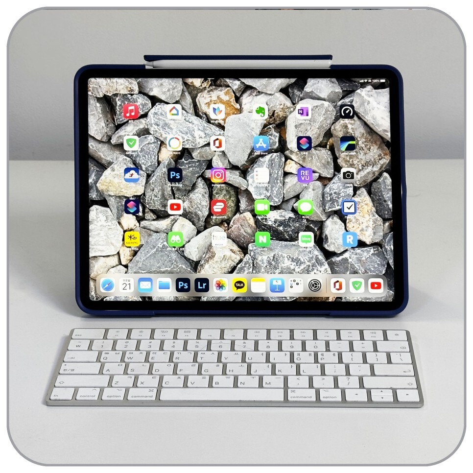 아이패드 프로를 장착한 모습니다. 케이스가 있지만, 아이패드 프로의 느낌은 정말 깔끔하게 유지하고 있습니다.