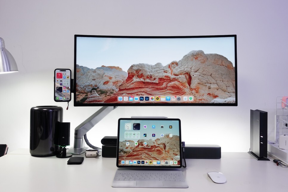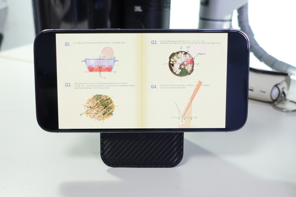 아이폰 14프로맥스를 거치해 보았습니다. 매우 깔끔하게 사용이 가능합니다. 맥세이프 자석 자력도 강하기 때문에 매우 안정적으로 부착이 됩니다.