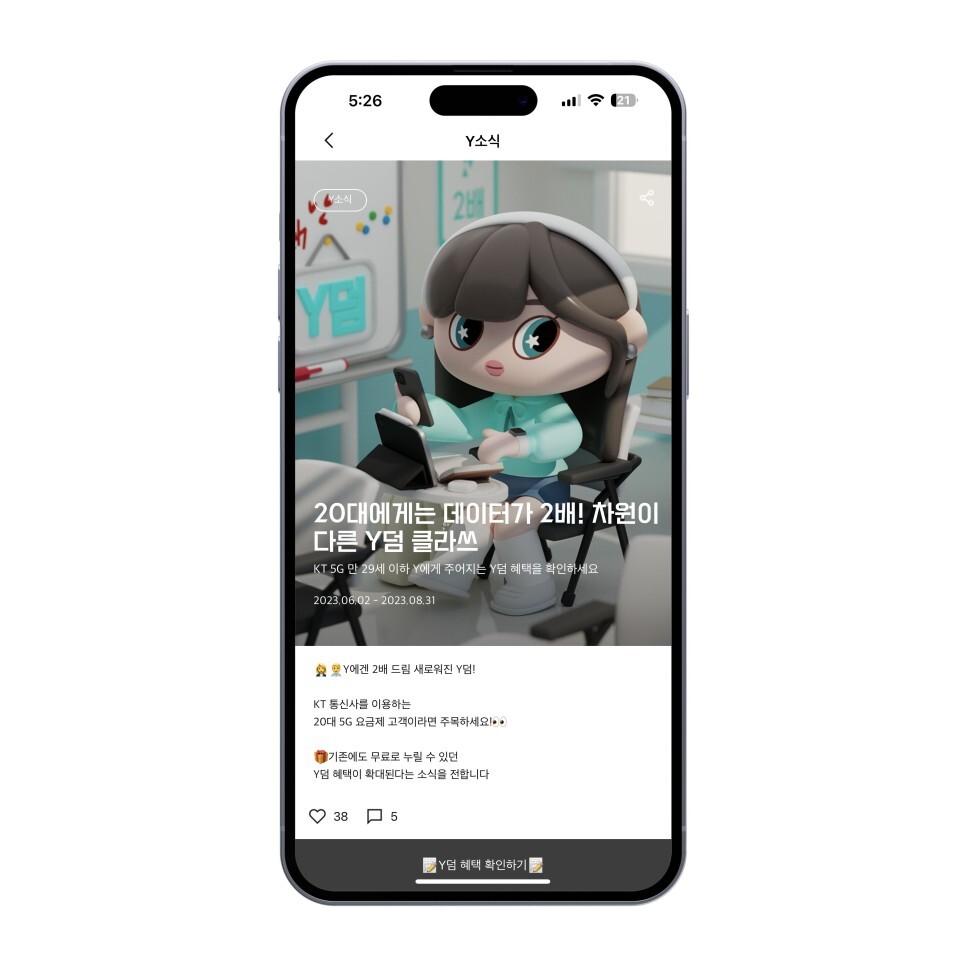 KT 통신사를 이용하는 20대 5G 요금제 고객에게 기존에 무료로 누릴 수 있던 Y덤 혜택이 더욱 풍성하게 리뉴얼 되어서 알려 드리려고 합니다.