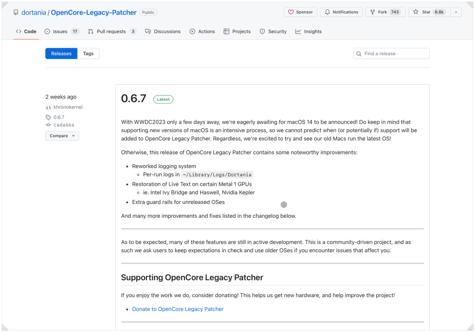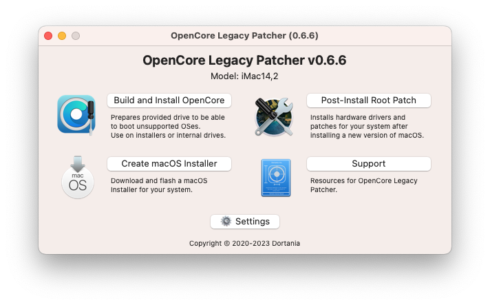GitHUB에서는 지원 및 지원되지 않는 Mac에서 macOS의 실행 및 잠금 해제 기능을 위해 Acidanthera의 OpenCorePkg 및 Lilu를 중심으로 하는 파이썬 기반 프로젝트로 주요 목표는 더 이상 Apple이 지원하지 않는 Mac에 새로운 생명을 불어넣는 것이며, 2007년처럼 오래된 컴퓨터에서 macOS Big Sur와 그 이후의 컴퓨터를 설치하고 사용할 수 있도록 하는 것입니다.