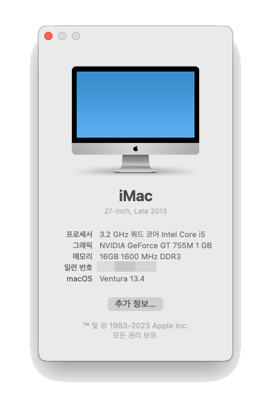 구형 중고 맥북프로 15인치와 아이맥 27인치에 MacOS Ventura(벤츄라) 설치하기IT 이야기/Apps & OS 2023. 7. 23. 10:07