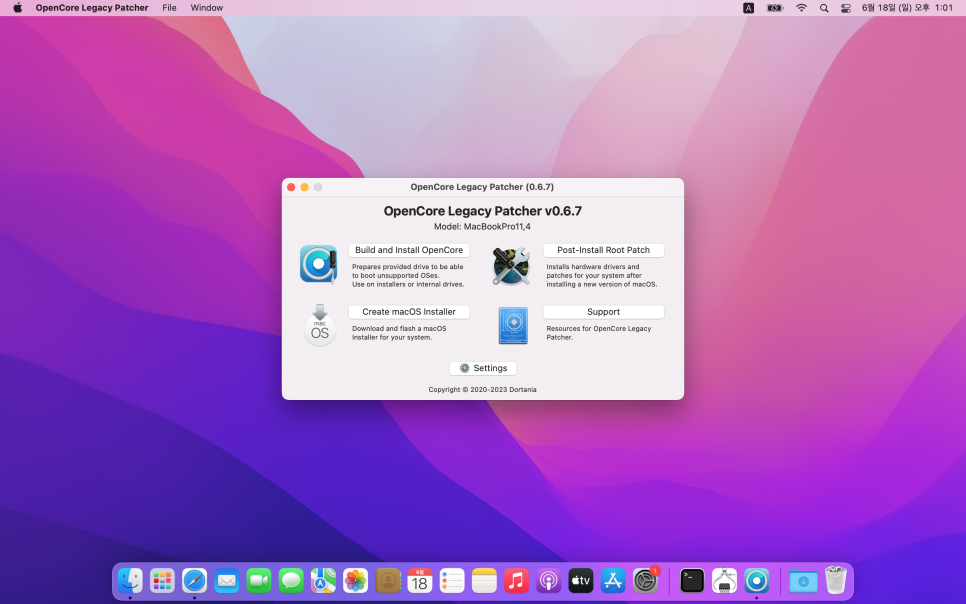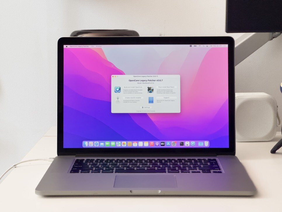 업데이트가 있으면 OpenCore-Patcher 업데이트 버전(최신)를 설치하고 다시 패치를 하면 해결됩니다. 2013 late 아이맥은 포토샵을 사용할 때 그래픽 메모리 부족 오류가 있는데 사용에는 문제가 없습니다.