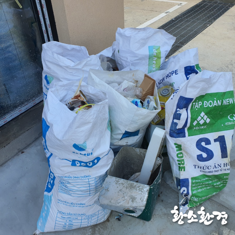 그 위에 있는 마대 자루를 옮겨 정리해 주었습니다.