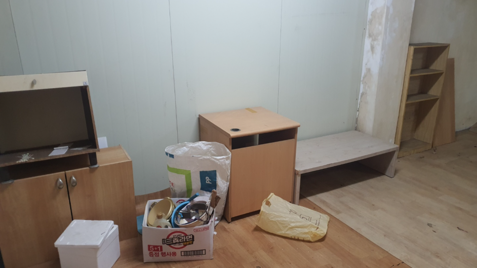 우선 상자 안에 종이나 서류 같은 것들을 넣어둔 듯 보이는데, 상자부터 하나씩 정리하여 치워주고 그 뒤로 목재폐기물과 같이 부피가 큰 것들도 정리해주었습니다.