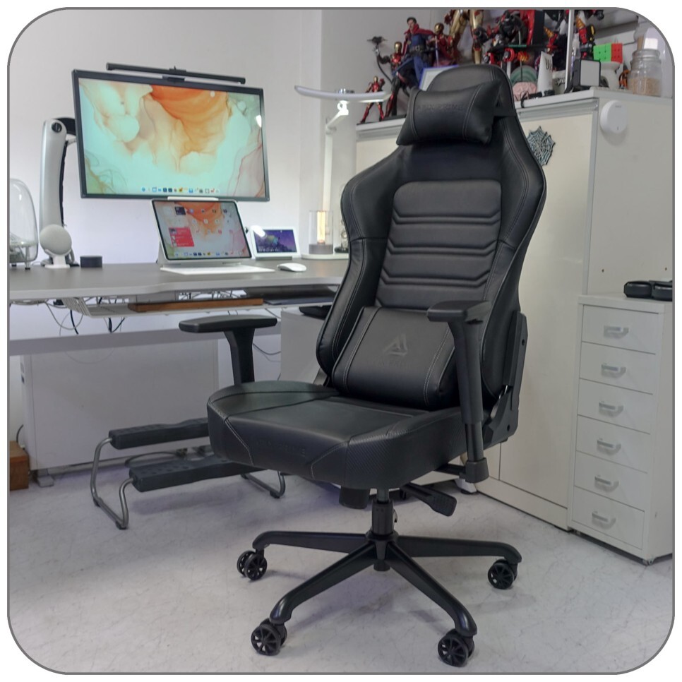 가죽에서 오는 고급스러움과 게이밍체어의 기능성이 결합된 제품입니다. 기존에 인조가족 제품에 비하여 조금 단단한 느낌이 있지만, 정말 좋아서 사무용의자로 추천하고 싶습니다.