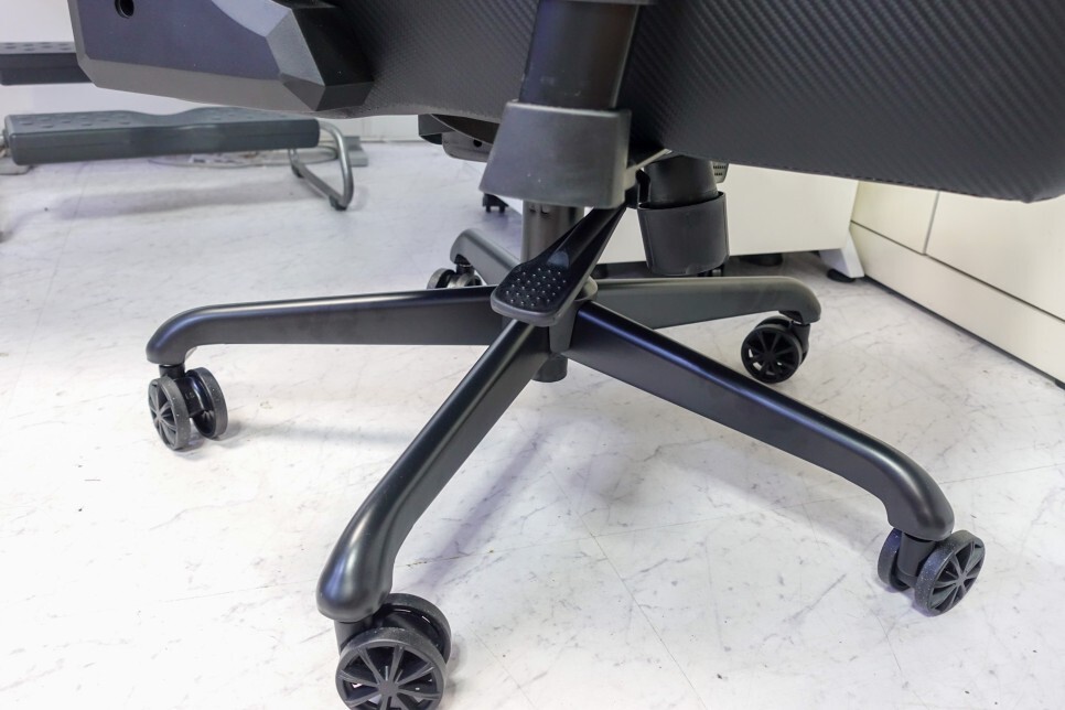 일반 의자와 차별점 중 하나가 하부가 아닌 측면에 조절 레버가 있습니다. 그래서 의자를 180도 눕힐 수 있는 것 같습니다.