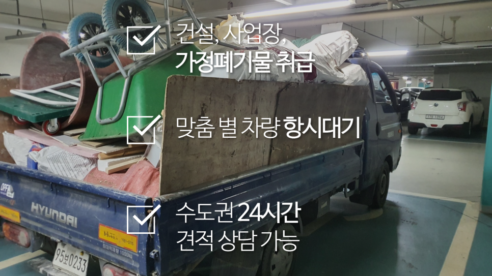 서울, 경기, 인천, 수원 어디든 신속하고 빠르게 작업 현장으로 달려가 드립니다. 폐기물 처리가 필요하시면 사진을 미리 보내시면 더욱 정확한 견적을 뽑아드릴 수 있습니다.