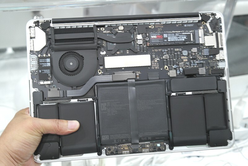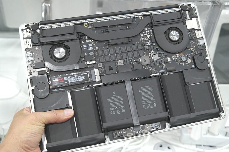 삼성전자 C-NAND SSD 990 PRO 1TB를 장착하도록 합니다. 이 제품은 초고속 데이터 처리와 높은 전력효율로 고사양 게이밍용으로 많이 사용 되고 있습니다. 하지만 우리 커스텀 전문가들은 오래된 맥북에서도 사용 가능한 부분을 가장 먼저 체크해 보아야 합니다.