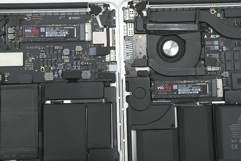 맥북프로 13인치 2015년형 모델에 삼성전자 nvme m.2 990pro 1tb를 장착하였습니다 .