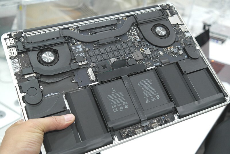 13인치 ssd 탈거 후 모습입니다. 배터리는 아마도 이전 사용자가 새 상품으로 교체를 1회 진행 상품으로 보입니다. 거의 새상품에 가까운 2015년형 맥북프로 입니다