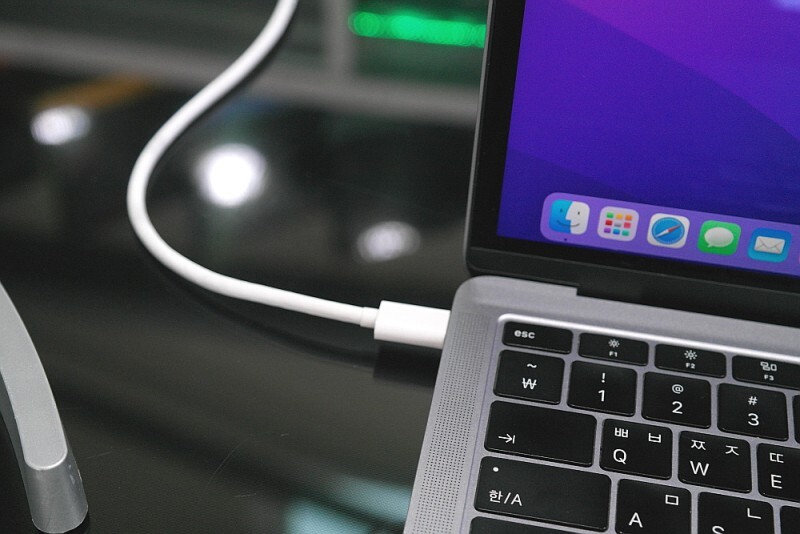 맥북에어 2019 모델의 Thunderbolt 3 단자를 사용하기 때문에, 다른 장치와 연결할 때 불편함이 있을 수 있음