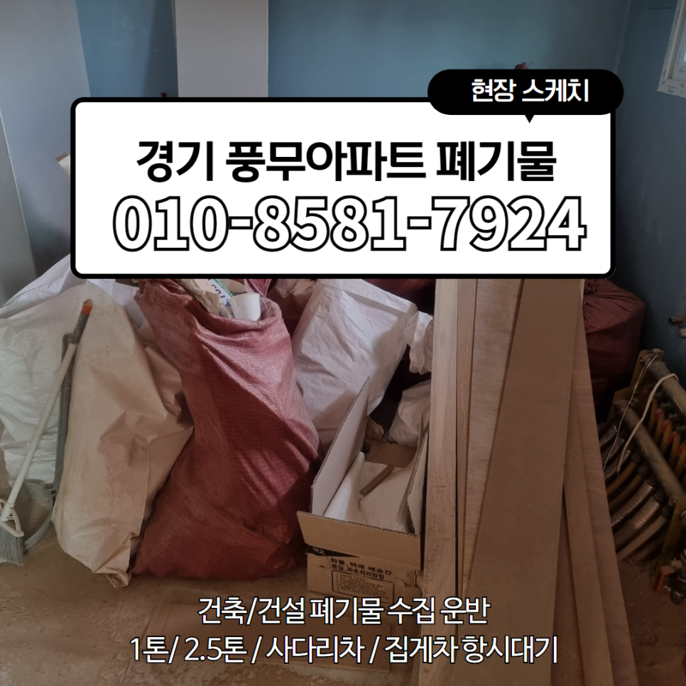 오늘 저희 황소 환경에서 폐기물처리 의뢰를 받아 찾아간 현장은 경기 풍무아파트입니다.