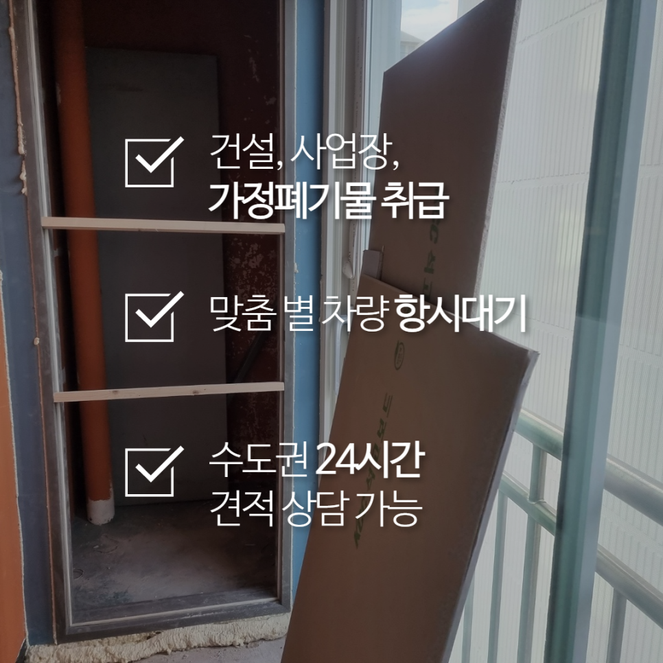 현장에 도착하니 베란다에 폐기물이 한가득 자리를 잡고 있는 모습이 보이는데요.