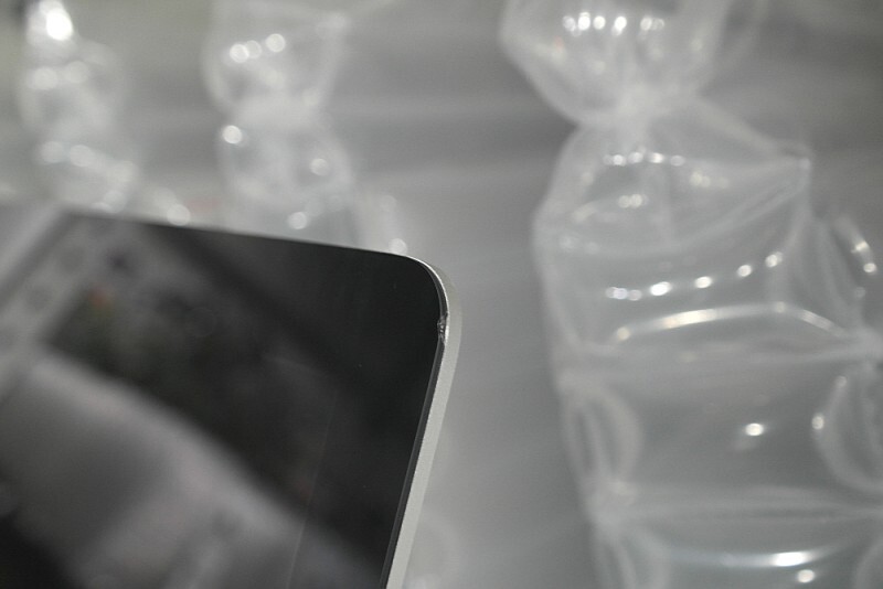 주변에 공기 에어를 이용하여 이동하는 경우와 공기 에어 비닐을 사용하지 않고 이동하는 경우 모서리 파손이 발생한 아이맥입니다