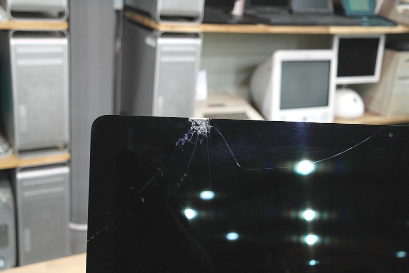 이렇게 액정이 파손이 되면 실제 아이맥의 가치는 거의 10분의 1로 떨어집니다 .